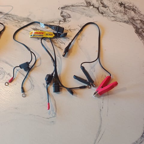Settet inkluderer lader, flere tilkoblingskabler/adaptere, opphengskrok, oppbevaringspose og bruksanvisning. Egnet for vedlikeholdslading av 12V blybatterier i for eksempel motorsykkel, scooter, ATV, små kjøretøy eller lignende utstyr som bruker 12V bly-syrebatteri.