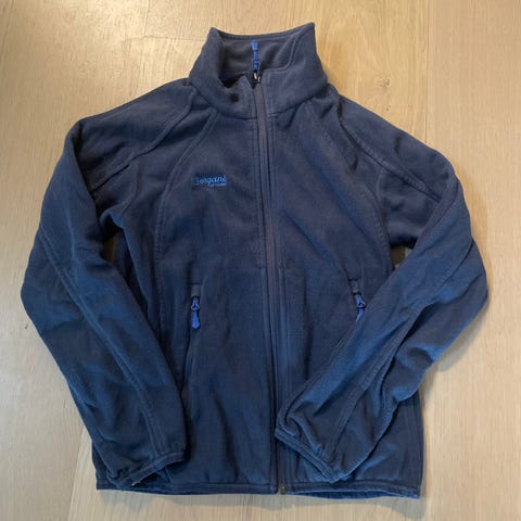 Bergans runde fleecejakke for barn , 10 år. Hel og pen. Blå med rosa detaljer