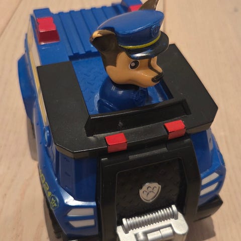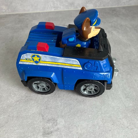 Paw Patrol lekebil politibil med figur i blå farge. Plastbil med plass til medfølgende figur i førersetet. Egnet som rollelek-leketøy for barn som liker Paw Patrol-universet og kjøretøy. Kan brukes sammen med andre Paw Patrol-leker og kjøretøy i samme serie.