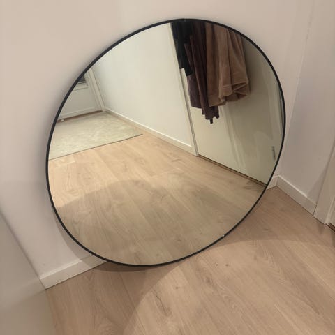 Selger dette fine runde speilet med svart ramme da jeg ikke lenger er i behov av det.