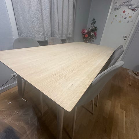 Stort spisebord m 8 stoler og ileggsplater selges