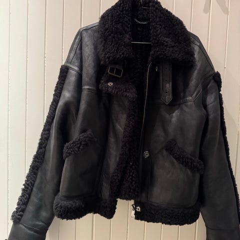 Jakken er svart med lys, myk teddy innside og detaljer i kontrastfarge. Modellen har krage, glidelås foran, glidelåsdetaljer på ermene og justerbar stropp nederst på ermene. Egner seg som yttertøy i kjøligere vær.