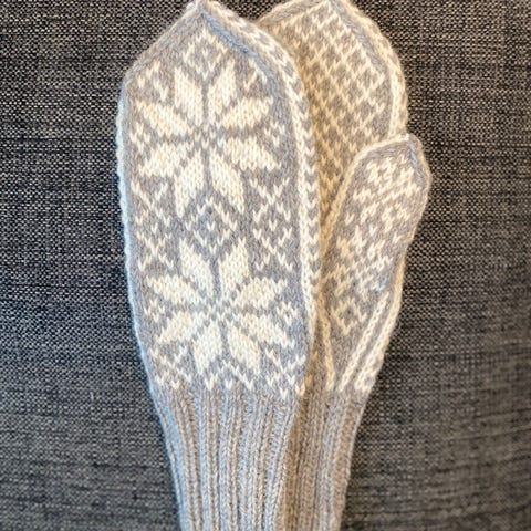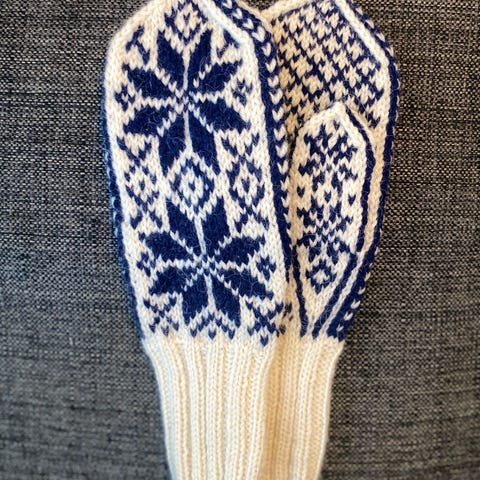 Selger gode og myke votter, strikket i «Sterk» fra «Du store alpakka» ( 40% alpakka, 40% merino ull, 20% nylon)