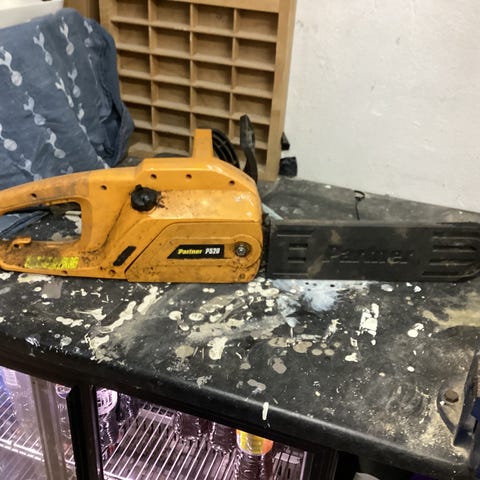 Den elektriske sagen er i veldig god stand, den ble brukt svært lite, og jeg fikk den nylig på service på et servicesenter hvor de byttet sagblad.