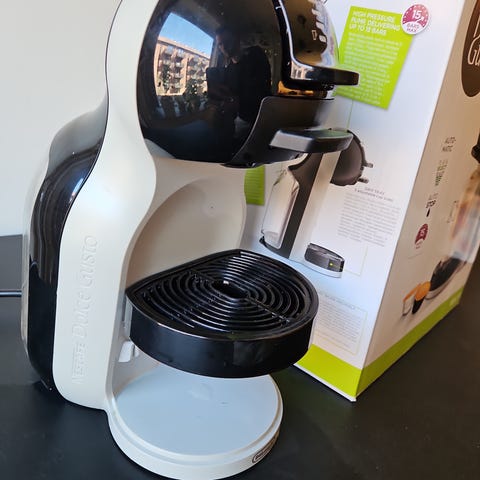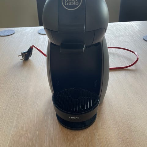 De'Longhi kapsel kaffemaskin. Maskinen er beregnet for bruk med kaffekapsler. Den har avtagbart dryppbrett og avtagbar vanntank for enklere rengjøring og påfylling.