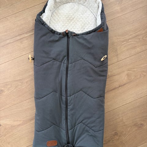 Pent og lite brukt vognpose fra Voksi. Ingen flekker eller slitasje som jeg kan se. Eneste er at blåfargen kanskje er litt lysere sammenliknet med da den var ny. Ny pris var 1549,-