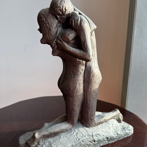 Skulptur, kyssende par på sokkel. (Austin skulptur).