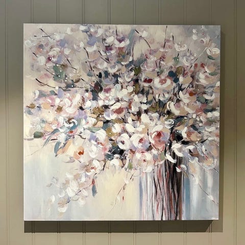 Jeg selger et nydelig og eksklusivt kunstverk på lerret(canvas) med motiv av blomster i delikate rosatoner. Bildet er stort og kvadratisk noe som gir et moderne og elegant uttrykk i stue eller entré. Storrelse er 100cm×100cm.Det finnes kun to eksemplarer av dette bildet i hele verden.Kan hentes i Kristiansund.Send melding ved interesse.