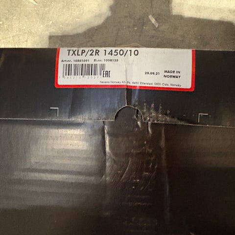 Nexans TXLP/2R 1050/10 varmekabel. Elektrisk varmekabel egnet for gulvvarme og andre installasjoner der det er behov for jevn varmefordeling. Modellen har tolederkabel (2R) og er beregnet for fast installasjon i gulv eller andre konstruksjoner i henhold til produsentens anvisninger og gjeldende forskrifter.