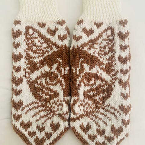 Hjemmestrikkede votter med lekent giraff-mønster🦒