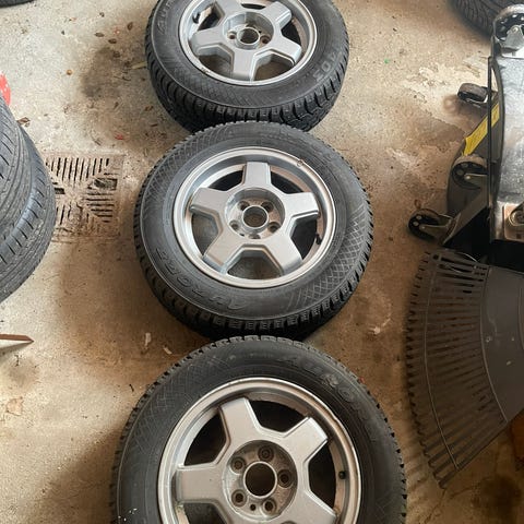 Gode piggfrie vinterdekk med originale Range Rover felger.