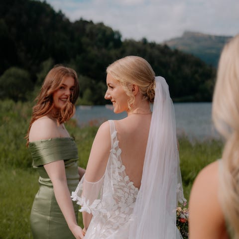 Følger med brudeslør i prisen. Brukt i vielse og middagen, før jeg byttet til en annen kjole. Er selvfølgelig renset og klar til bruk.