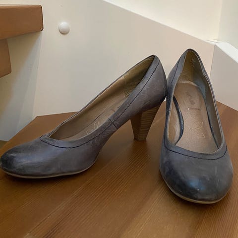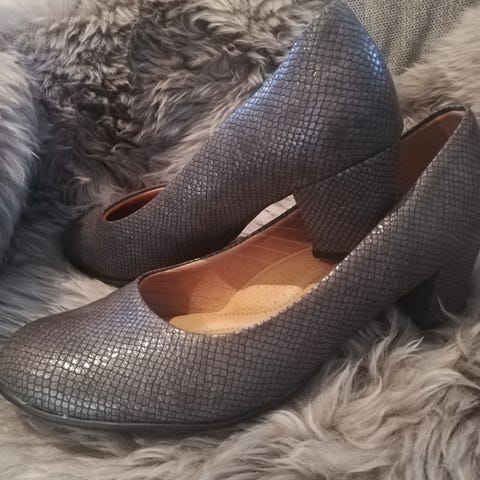 Pensko til dame i farge grå, skinn - str 40 (passer str 39), liten hæl