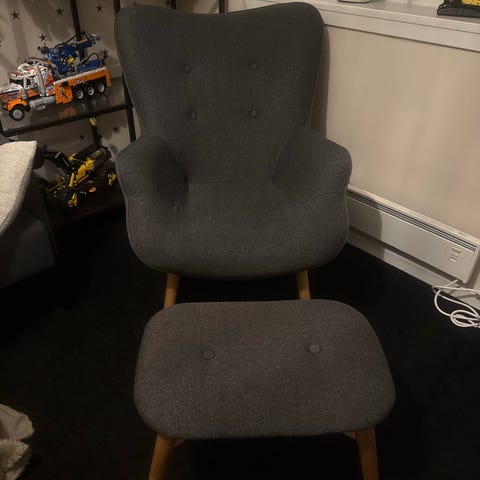 Pent brukt lenestol i fløyel fra JYSK selges. Behagelig stol som selges grunnet flytting.
