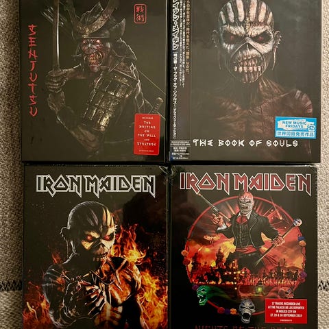 AC/DC og Manowar CD-bokser samling. Inneholder blant annet AC/DC-boks med flere album på CD i eske med illustrert omslag, samt Manowar-boks med flere CD-plater i tilsvarende eske. Produktene er fysiske musikkutgivelser i boksformat med tilhørende cover og innpakning, egnet for samlere av rock og metal på CD.