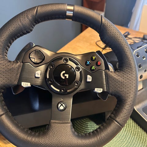 Playstation G29 ratt og pedaler, GT 7 for Playstation 4 og eldre god stol selges. Boks følger med. Kjøpt i 2024 ( ikke stol) og lite brukt da sønnen foretrekker andre spill. Nå trenger vi plassen så selges til knallpris.