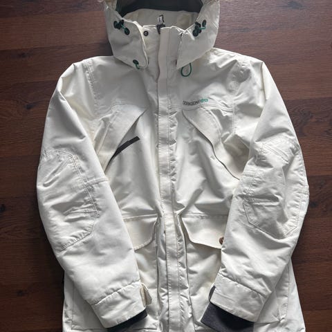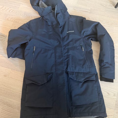 Didriksons jakke for dame i størrelse M. Jakken er rød og laget i polyamid. Modellen har fast hette med justeringsmuligheter, glidelåslukking foran og flere lommer med glidelås og knapp. Lengden går ned over hoftene for ekstra dekning. Egnet som ytterjakke til hverdagsbruk og tur i variert vær.