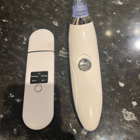 Elektrisk porerenser for ansiktsrens i hvit farge. Enheten har utskiftbare munnstykker i ulike størrelser for tilpasning til forskjellige hudområder. Leveres med USB-ladekabel for oppladbar bruk. Egnet til bruk i ansiktet for fjerning av urenheter fra porene. Passer for voksne uavhengig av kjønn.