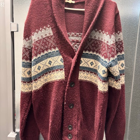Selges strikket herrejakke med knapper.Helt ny,aldri brukt men ikke lappen.Veldig fin,fra en moterritig kolleksjon