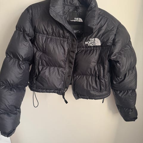 The North Face dun vinterjakke for dame i størrelse S. Jakken er svart og fylt med dun. Den har hette og justerbar snøring nederst. Yttermaterialet er glatt og glansfullt, med The North Face-logo på brystet. Passer som varm ytterjakke på kalde dager.