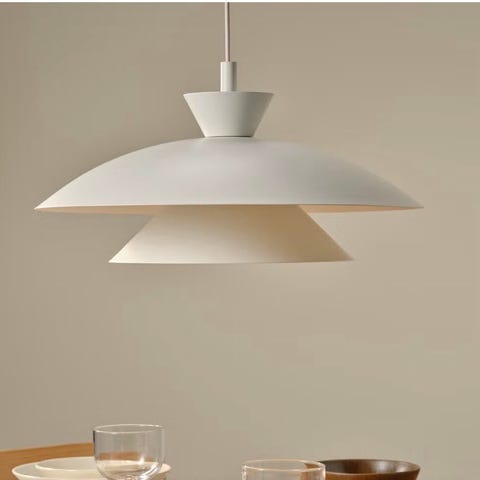 Lampen består av fire lagdelte skjermer som sikrer en jevn og behagelig spredning av lys, samtidig som den skaper en varm og koselig atmosfære. Uansett om den plasseres over spisebordet, i stuen eller i entréen, tilfører Ejka Mini pendel et raffinert preg som gjør rommet både innbydende og funksjonelt.