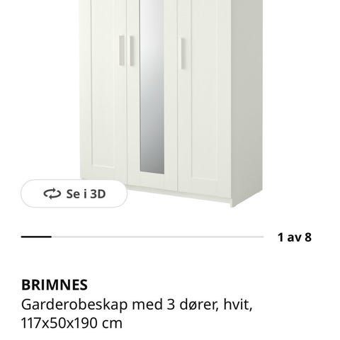Ikea BRIMNES garderobeskap med 3 dører. 117x50x190cm