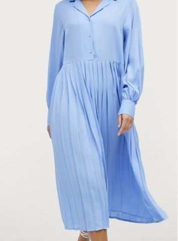 Plissert stoff i ermer, halsdekor og skjørtdel
