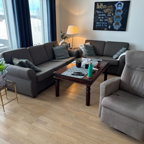 Det er ikke sittet i sofaen,men det har blitt sittet par ganger i den ene stolen.