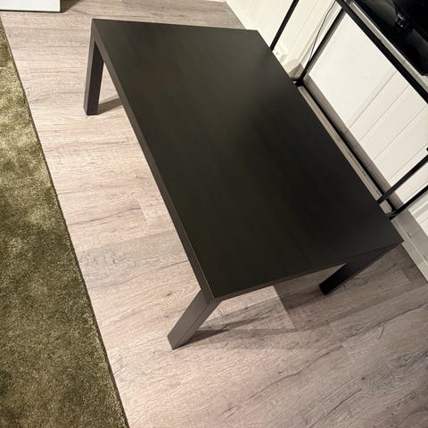 Bordet er godt brukt og har noen riper i overflaten (se bilder), men er fullt brukbart og står stødig. Passer fint som sofabord, sidebord, på hybel eller som ekstra bord.