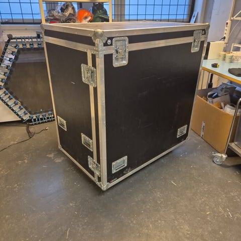 Pent brukte rack til fastmontering av forsterkere til lydanlegg.