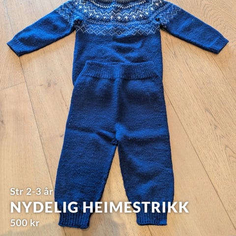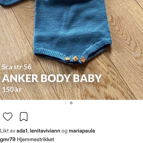 Anker genser baby , hjemmestrikket ullgenser blå str. 56 unisex merinoull