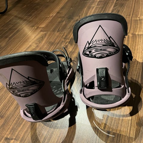 Sett med snowboard og bindinger egner seg til bruk i alpinbakke og generell snowboardkjøring.
