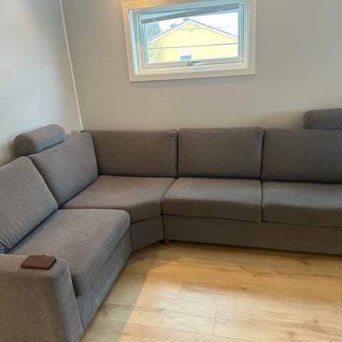 Denne lysegrå sofaen har plass til hele sulamitten og er den perfekte knøsofaen!