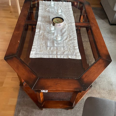 Jeg gir bort møbler til kjøkken og stue, som på bildene. Hvis du vil, kan du også henge opp gardiner og draperier. Det er flott hvis du vil ta alt samlet. Ta kontakt med meg hvis du er interessert telefonnummer 912 79 840. Personlig henting i Fredrikstad