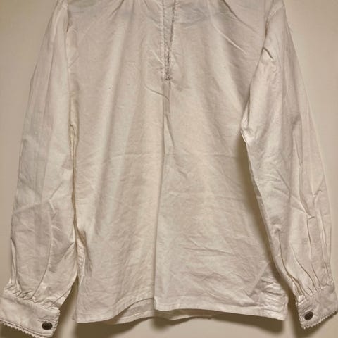 Selger bunadsskjorte i 100% bomull. Det står at den er i størrelse 38, men jeg vil si den tilsvarer mer en liten small. Ingen tydelig slitasje.