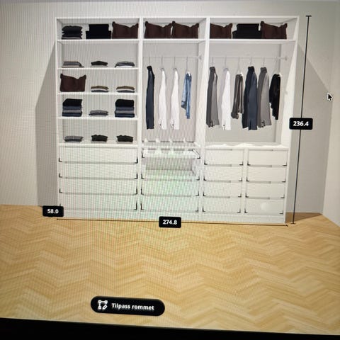 Alt fungerer fint, men ene døren i skapet til høyre er litt treg da vi muligens ikke har satt den sikkelig på. Man kan også velge å ha en dør, eller uten dør.