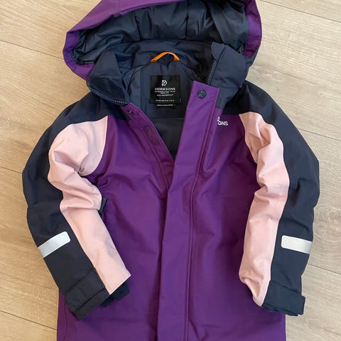 Didriksons jakke i størrelse 120. Jakken har utvidelsessøm i ermene som ikke er åpnet. Ermene kan dermed forlenges ved behov.