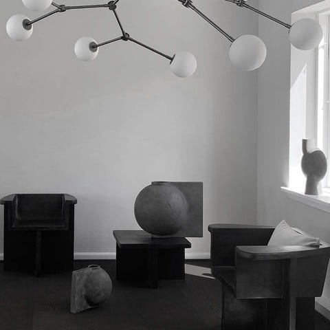 Drop Chandelier fra 101 Copenhagen er en skulputurell taklampe med åtte fleksible armer og åtte lampeskjermer som kan lyse opp, ned og alt imellom. Teksturen i metallet gir en ekstra dybde. Et kult blikkfang over et avlangt spisebord eller som smykke i et stort rom.