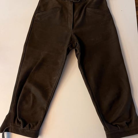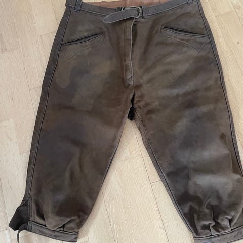 Selger nikkers i skinn. Ikke mye brukt, men bærer preg av å ha hengt lenge (litt falmet). Ikke like tydelig i virkeligheten som på bildene.