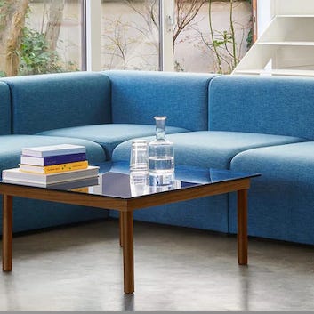 Kjøpt i en Unico-butikk i Japan for 3 år siden. Vi selger det fordi det ikke passer til innredningen i hjemmet vårt i Norge. Det er et 4-delt sett bestående av et spisebord i akasietre, to lenestoler med glidelås trukket i denimstoff og en benk.