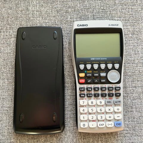 Casio FX-9860GII grafisk kalkulator med avtagbart beskyttelsesdeksel.