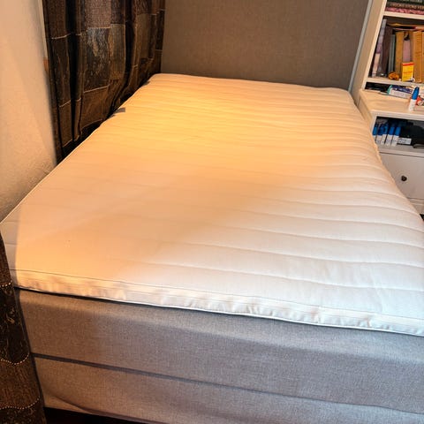 Sengen er blitt brukt som gjesteseng, og er derfor lite brukt. Ny overmadrass fra jysk kjøpt i fjor sommer