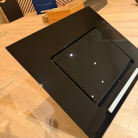 Witt kjøkkenventilator. Vegghengt modell i børstet stål og svart glass