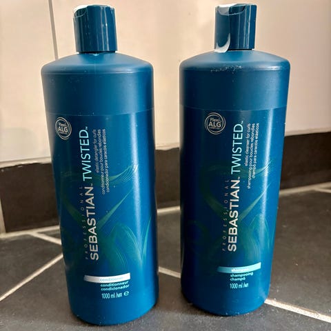 Selger shampo og balsam (1 litere) hvor det er tatt 8-10 pump av shampo og 4-5 pump av balsam (så og si fulle).