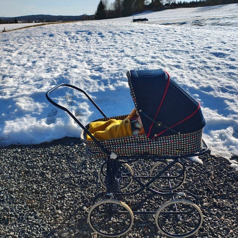 Gamle antikk / retro barne vogner. Stått på en låve i mange tiår. Sikkert 100 år gamle. Men alder er uvisst. Hentes på høvåg.
