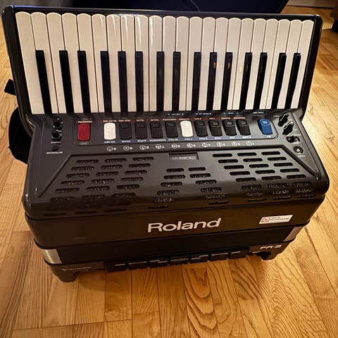 Selger min trofaste Roland FR-8x. Dette er flaggskipet til Roland og det nærmeste man kommer følelsen av et akustisk trekkspill i den digitale verden.