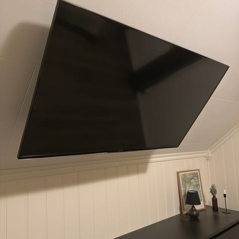 Bak på TV-en er det standard VESA-feste for veggmontering, og det følger med veggfeste på bildene. Egnet som hoved-TV eller som ekstra skjerm i hjemmet, for eksempel i stue, kjellerstue eller på hytta.
