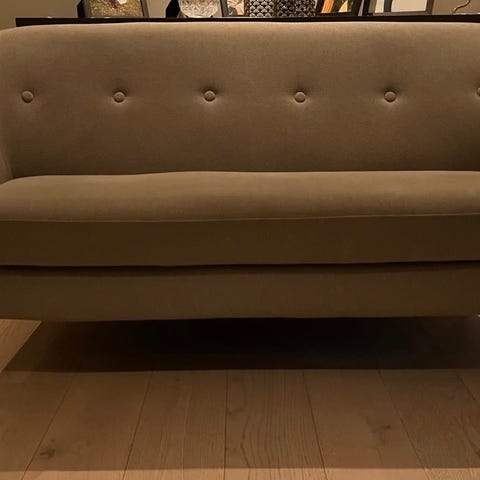 Pent brukt sofa fra IKEA selges. Oppbevaring i puffen (den uten ryggstøtte). Mørk grå farge. Pynteputer følger ikke med. Hvert sete er én modul så den er lett å frakte for to personer. Står nå demontert på innglasset balkong.