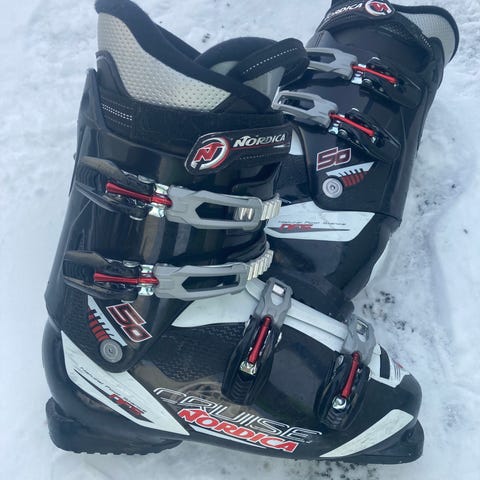 Pent brukt slalåmstøvler i størrelse 280 / 28.0 mondo og sålelengde 325mm. Flex 90.