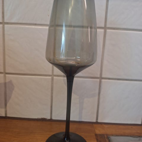 Har et rødvinsglass som bare står i skapet og ikke blir brukt.